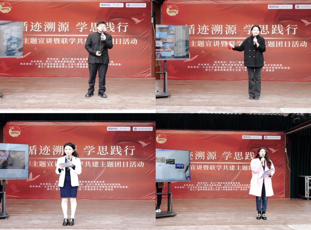 研讨交流后,党员教师们又参加了学院“红领宣讲团”携手浙江广电集团“雁行队”开展的“循迹溯源、学思践行”青年主题宣讲暨联学共建主题团日活动。与青年学生、青年记者、青年创客们一起聆听了一堂有思想厚度、有理论深度、有情感温度、有青春热度的思政宣讲大课。