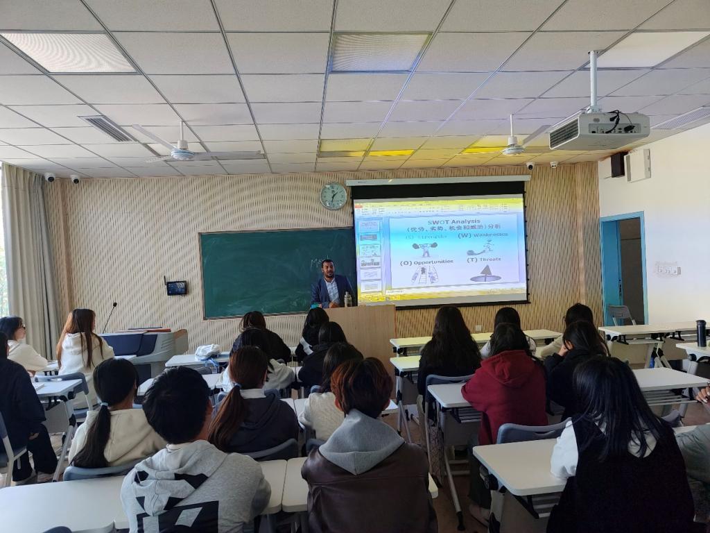 为帮助大学生全面评估自身能力,11月22日下午,bat365官网登录入口开展SWOT分析大学生职业生涯规划讲座。本次讲座由学院外教Ali博士主讲,夏礼坚果辅导员工作室协办,各专业学生积极参与。
