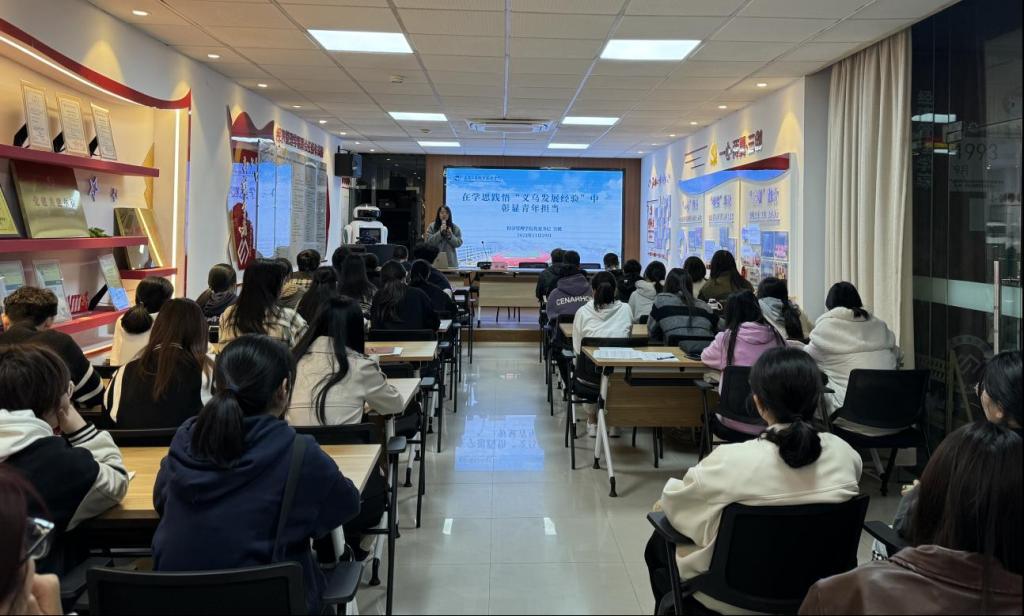 bat365官网登录入口党委书记为学员们作《在学思践悟“义乌发展经验”中彰显青年担当》微党课,分别从“如何在义乌发展经验中强自信”“如何在总书记殷殷嘱托中立大志”“如何在职业教育强国新征程上提技能”,阐述了新时代背景下青年应当如何面对时代考题。她对全体学员提出三点要求,一是要在深刻理解义乌发展经验中,秉承“尚德崇文、创业立身”的校训,扛起青春担当;二是要在主动践行义乌发展经验中,坚持守正创新、薪火相传,诠释好青春的奋斗力量;三是要在勇敢面向未来上圆梦青春誓言,仰望星空不忘初心、脚踏实地勇毅前行。