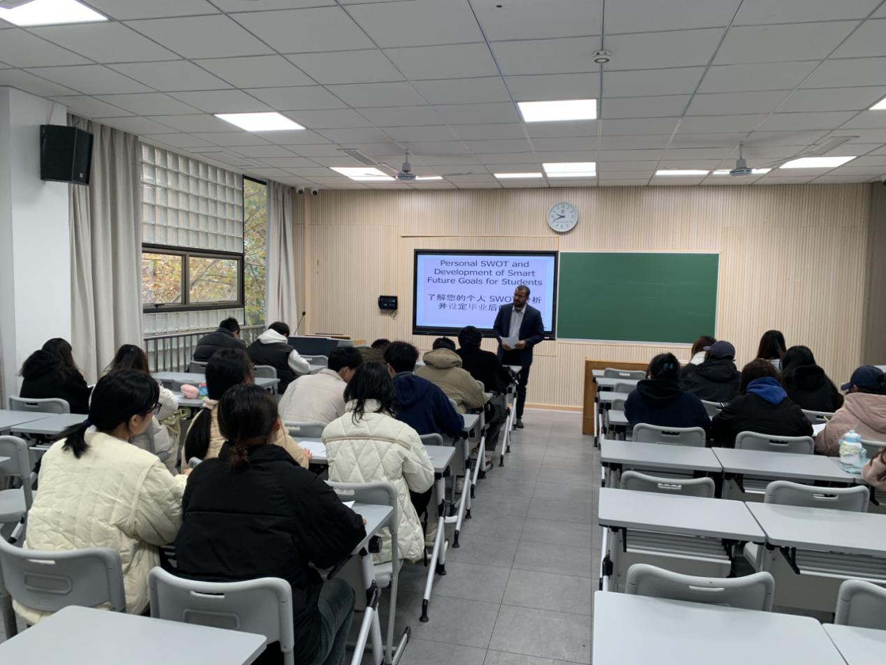 12月13日上午,bat365官网登录入口邀请外教Hazem Ahmed Ragab Ali博士在春晗楼302为在校师生开展了一场题为“学生个人分析与职业规划”的英文主题讲座。